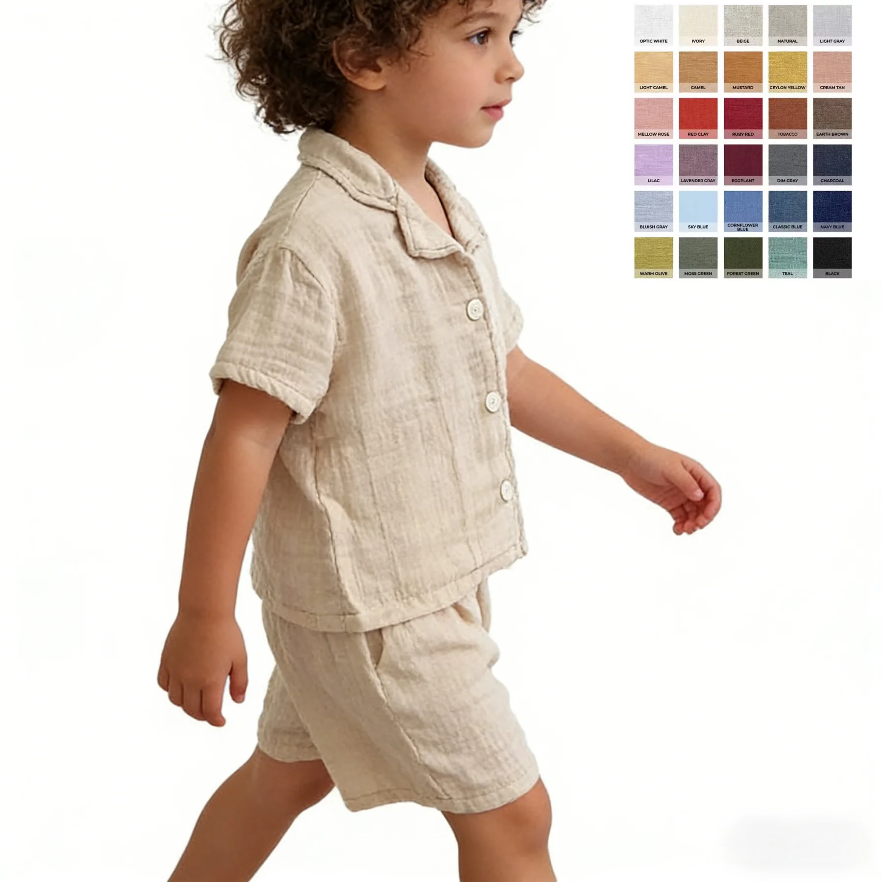 Wholesale Custom Logo Muslin Cotton Infant Outfits Short Sleeve Lapel Shirt Cotton Shorts Breathable Kids Girl Boy Clothes Set